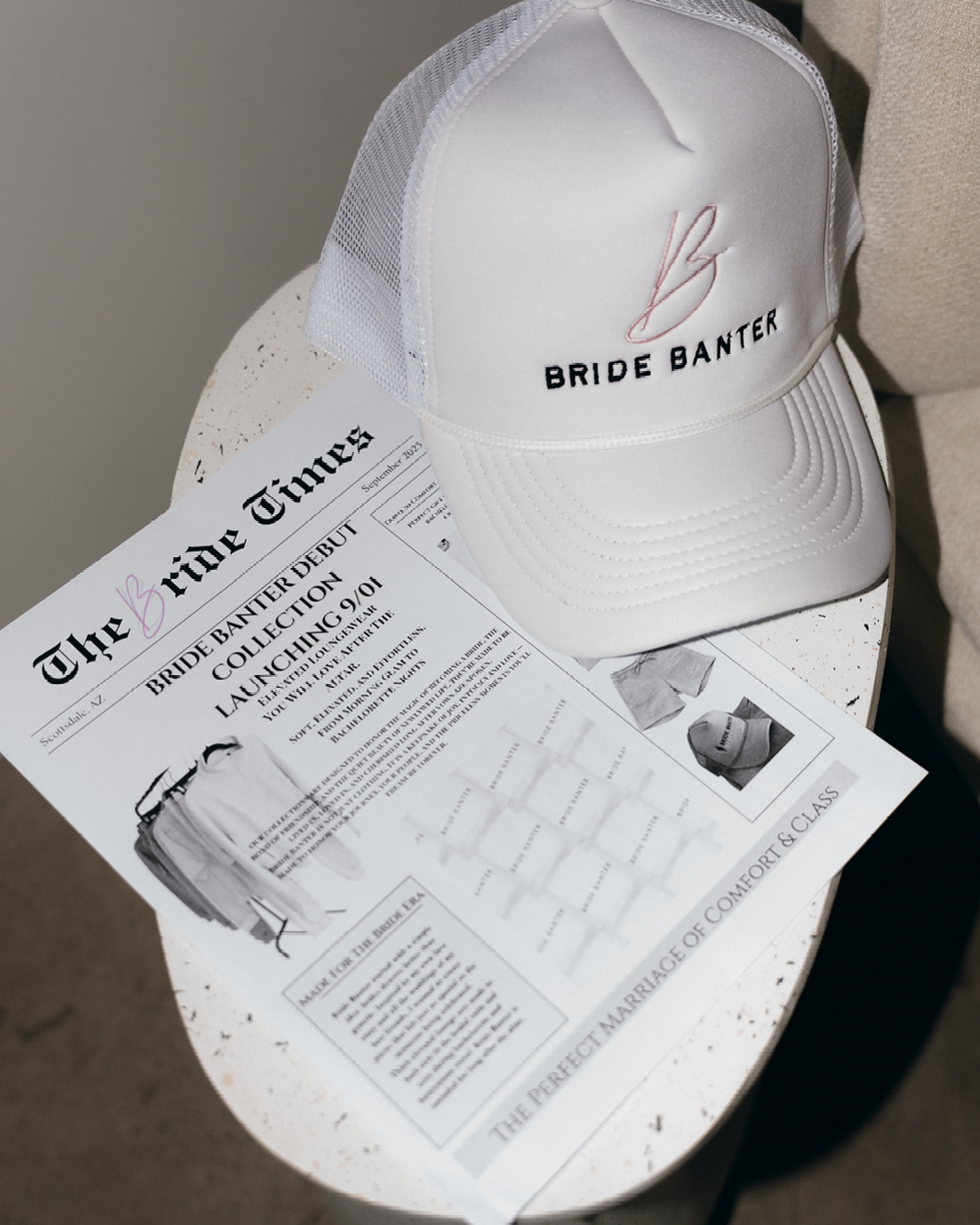 Bride Banter’s debut collection of luxury apparel for brides and bridesmaids. Thoughtfully designed for every step of the bridal journey, these classic pieces blend cute and cozy with elevated style. Made to be loved long after ‘I do.’ -