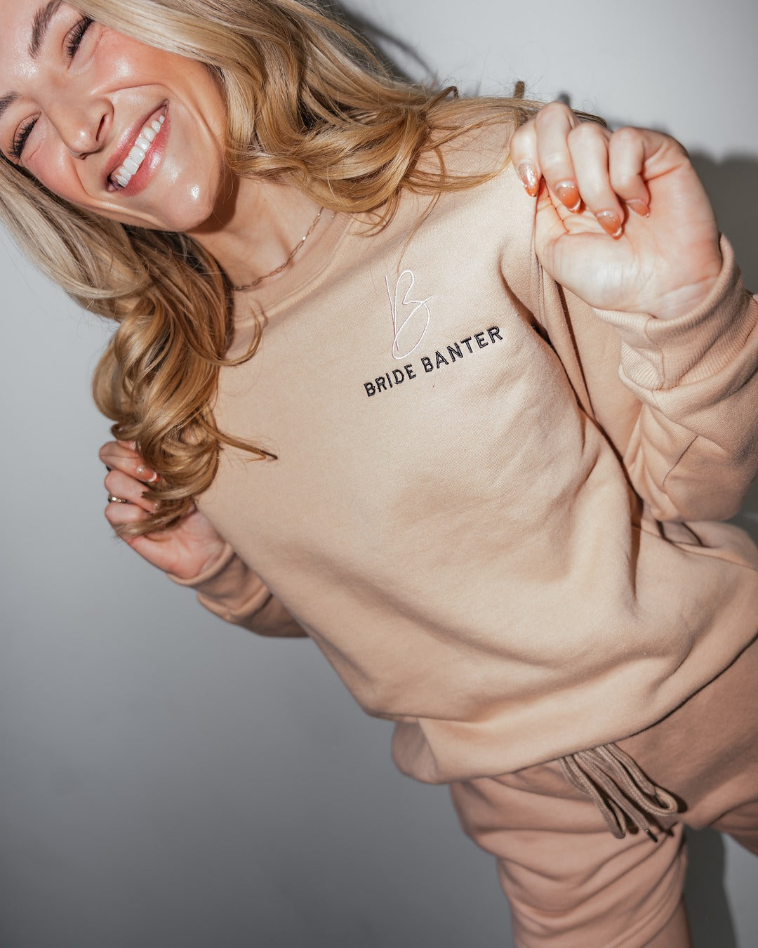 Elevate your bridal loungewear with the Cherished Crewneck in classic Pure White. Made for the bride. Perfect for honeymoon travels, cozy mornings, or matching bachelorette group moments.